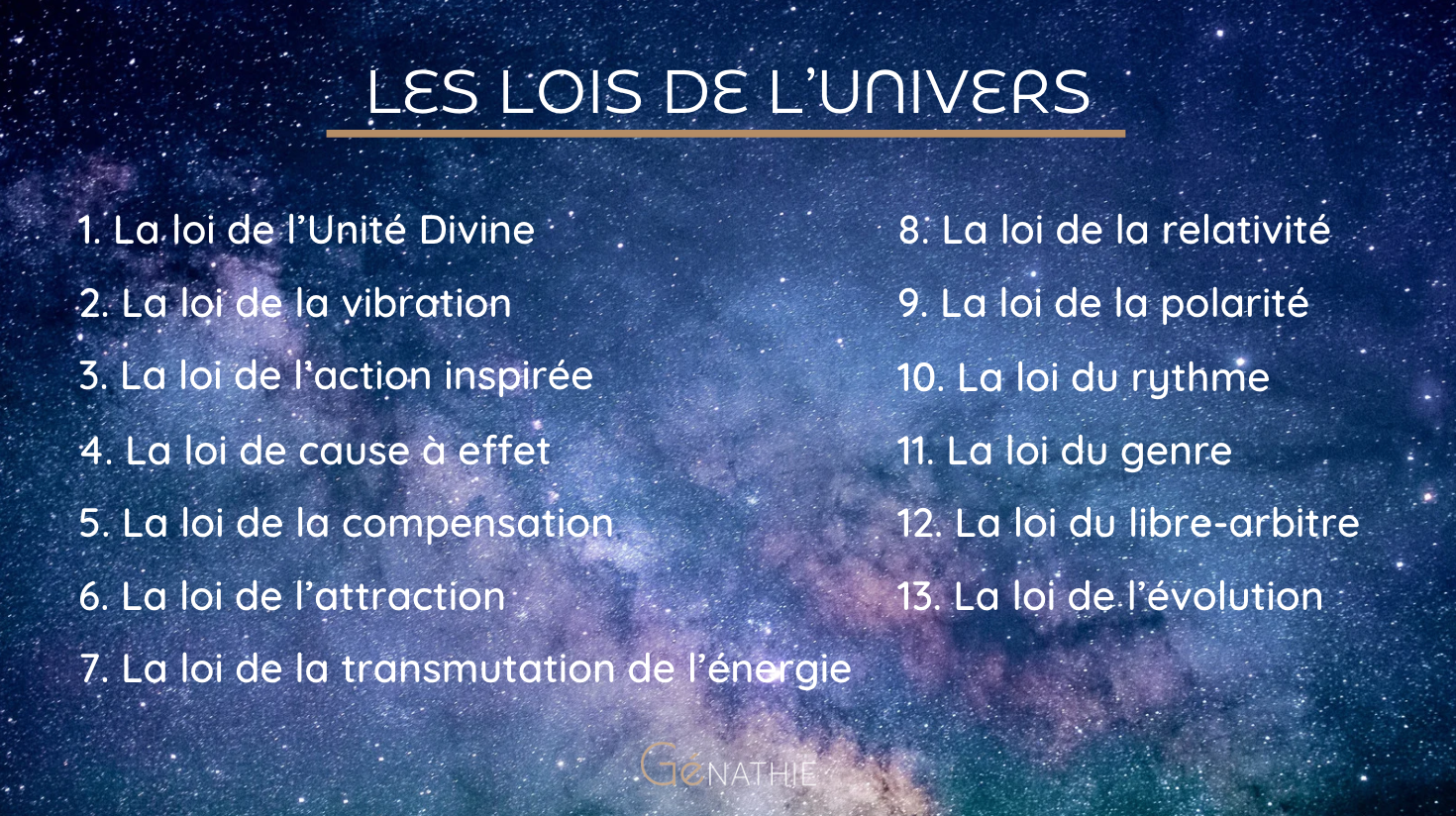 Vous trouverez ci-dessous une courte description des principales lois spirituelles :